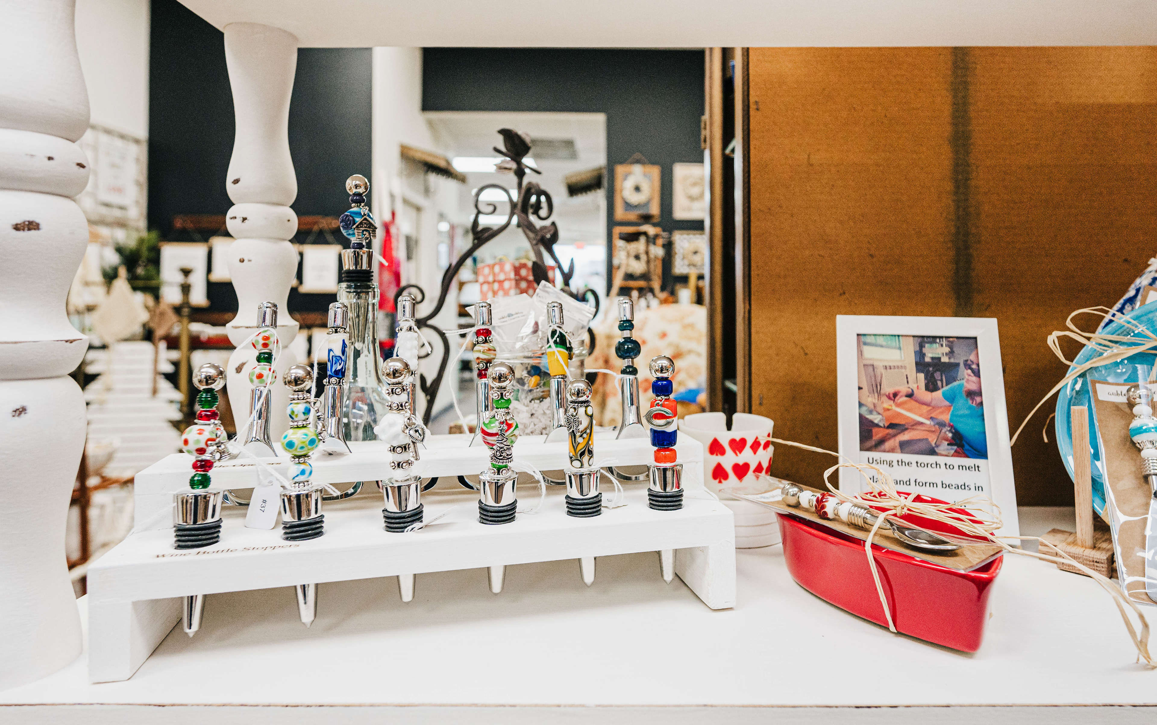 Come shop our 3,000 sq ft boutique featuring over 35 unique artisans! Explore an eclectic mix of handcrafted treasures, stylish accents, and nostalgic treats that are sure to delight your senses and add personality to your space.